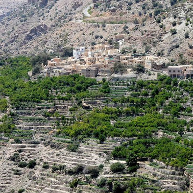 Discover Nizwa Fort's impressive tower & famous Bedouin silver jewelry souq, then ascend Oman's stunning Jabal Akhdar Green Mountain (2800m above sea level) for breathtaking panoramic views, terraced rose gardens, fruit farms & remote Wadi Bani Habib mountain village, finishing with historic Birkat Al Mauz old town on this unforgettable full-day adventure from Muscat.